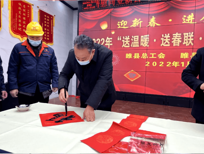 活動最后,縣文聯邀請11名**書法家現場義寫春聯,為亞新公司職工送來節(jié)日的問候。